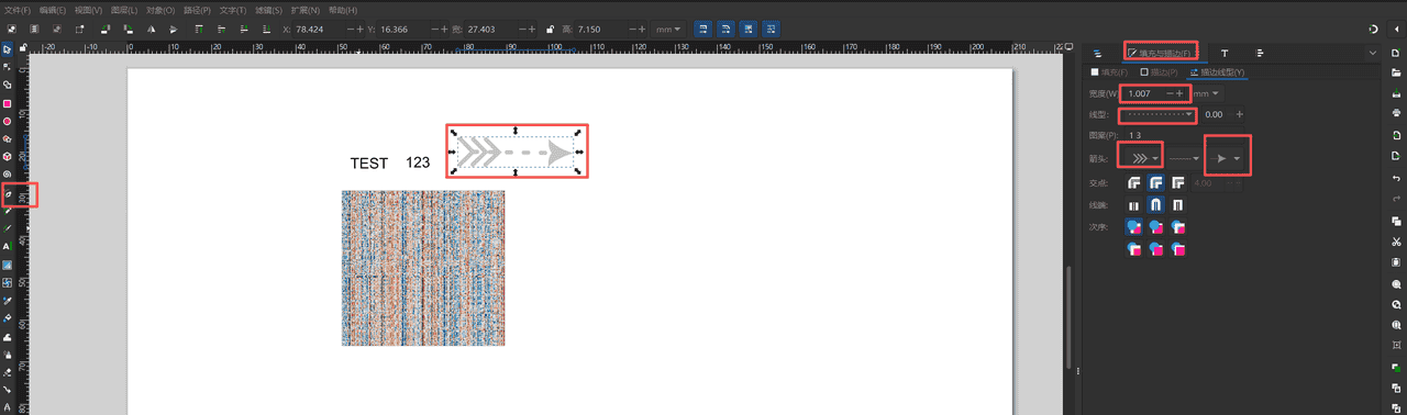 2.画直线及箭头。点左栏钢笔画直线,画布点击画起点,接着点击可画出两点连线,鼠标右键取消画下一个节点,在右栏选中毛笔图标编辑线的颜色或类型,可选择粗细,虚直线类型,起点标及终点标等。