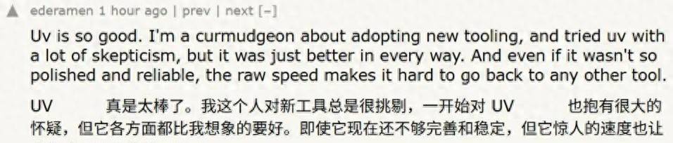 “uv是近十年来Python生态系统发生的最好的事情。”