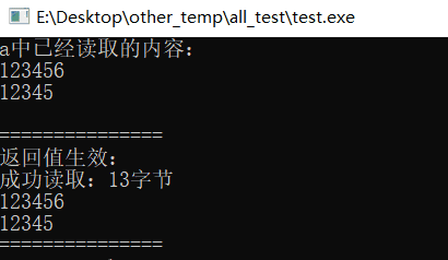 测试2:二进制读取时,读取n个大小为m的数据和读取m个大小为n的数据时,返回值的区别: