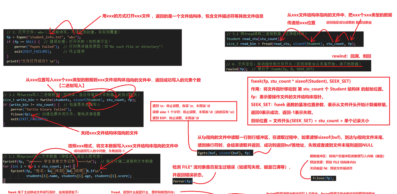 2.2、主流文件读写函数:fread/fwrite(二进制 / 文本通用)、fscanf(用gets替代)/fprintf(文本专用)