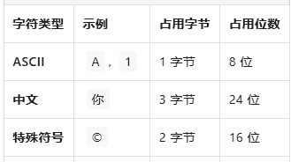 现代计算机统一采用 8位 = 1字节(1 Byte = 8 bits)ASCII 字符:1字符 = 1字节 = 8位 ✅Unicode 字符,情况就复杂了,以 UTF-8 编码为例,中文/日文等(UTF-8) 1字符 = 2-4字节,简单示例如下: