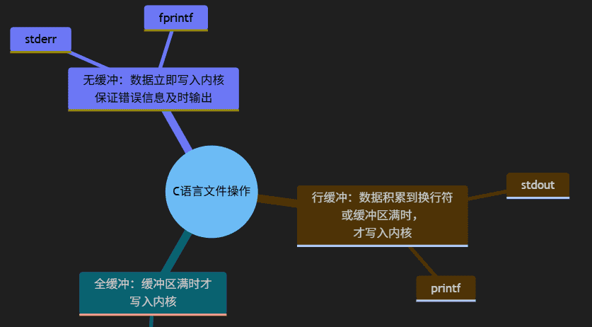 c语言的标准库文件操作,操作对象是FILE* 流对象(见下文2.1fopen的返回值),所有操作 FILE* 流对象的函数都共享同一个内置缓冲区,这是标准库的核心设计。c语言的标准库文件操作函数中,有的函数是全缓冲区(fread/fwrite)、有的是行缓冲区(fgets/fputs)、有的无缓冲区(stderr)。