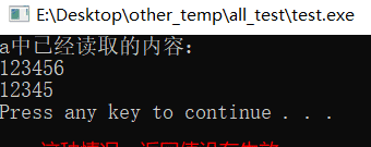 测试1的情况虽然可以正确读取,但是a没有加结束符号””,下面就制作一个可以不断读取文件的模板用于测试的文本内容: