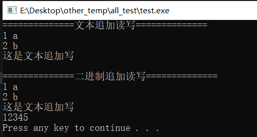 ”,a)的缺点在例子中已经暴露,它在读取的时候跳过了所有空白字符;用fgets代替fscanf,修改了二进制追加内容“12345”结果如下: