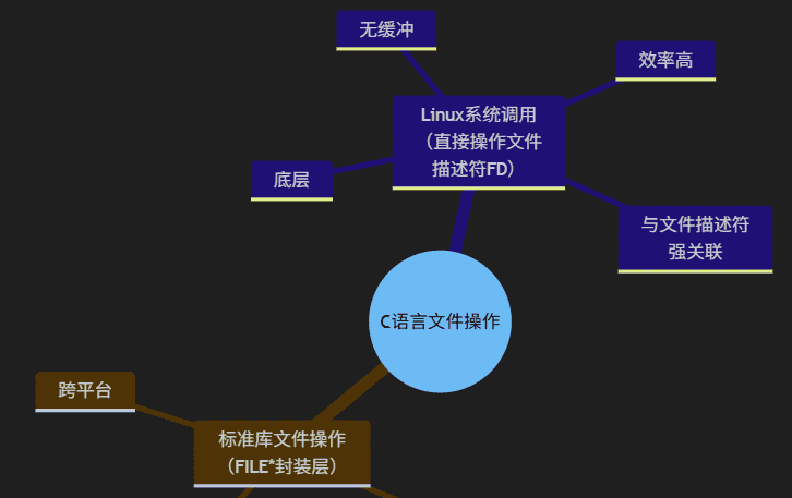 C 语言的文件操作函数分为两大核心层级:标准库文件操作(FILE* 封装层) 和 Linux 系统调用(直接操作文件描述符 FD)。前者跨平台、带缓冲,适合常规开发;后者底层、无缓冲、效率高,贴合 Linux 系统特性(与之前讲的文件描述符强关联)。