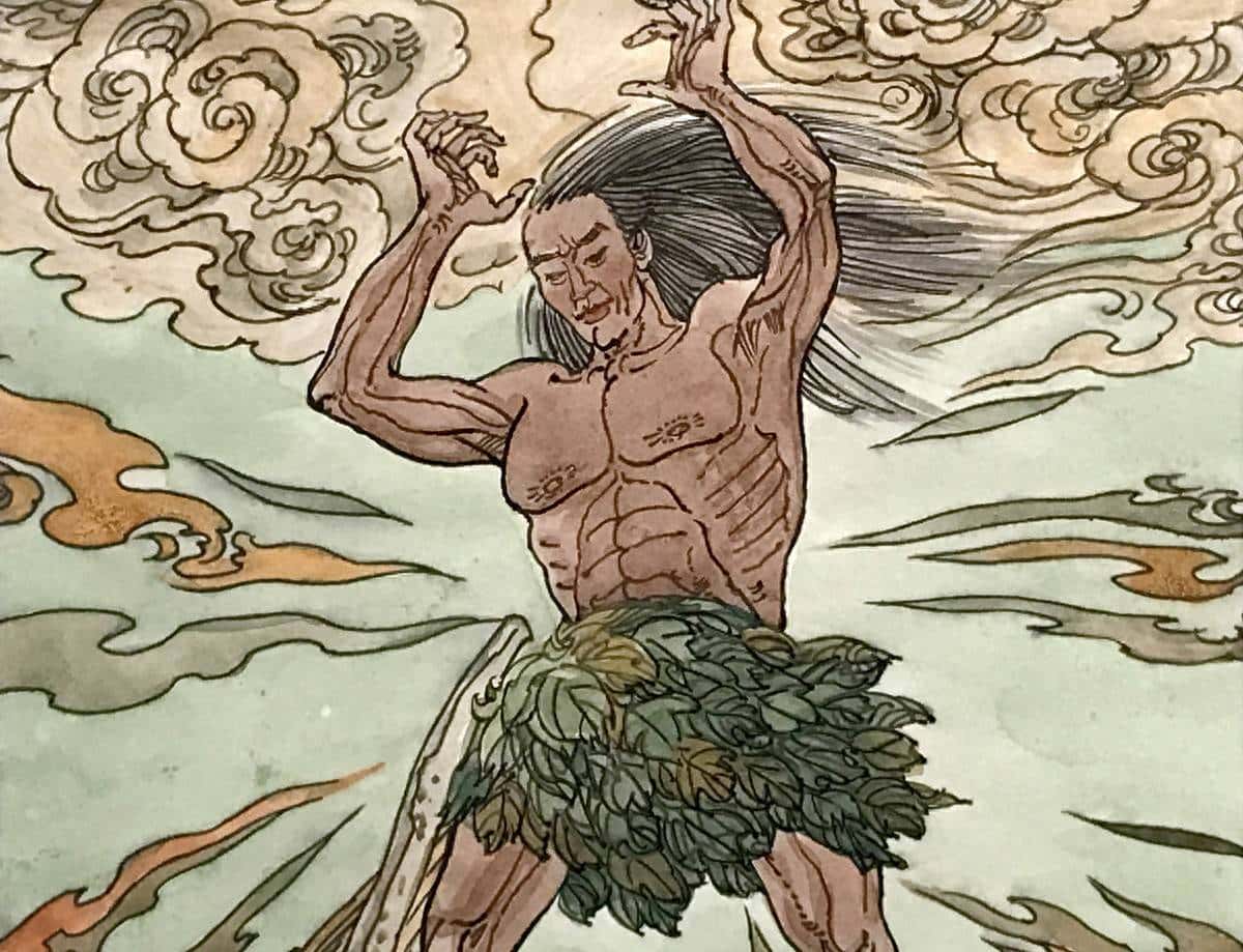 ⑵伟大的巨人盘古,用他的整个身体制造了秀丽的世界。