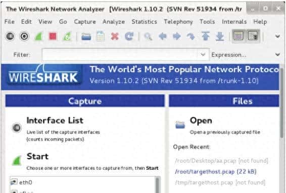 (2)在该界面Start下面,选择要捕获的接口。这里选择eth0,然后单击Start按钮,将显示如图9.50所示的界面。