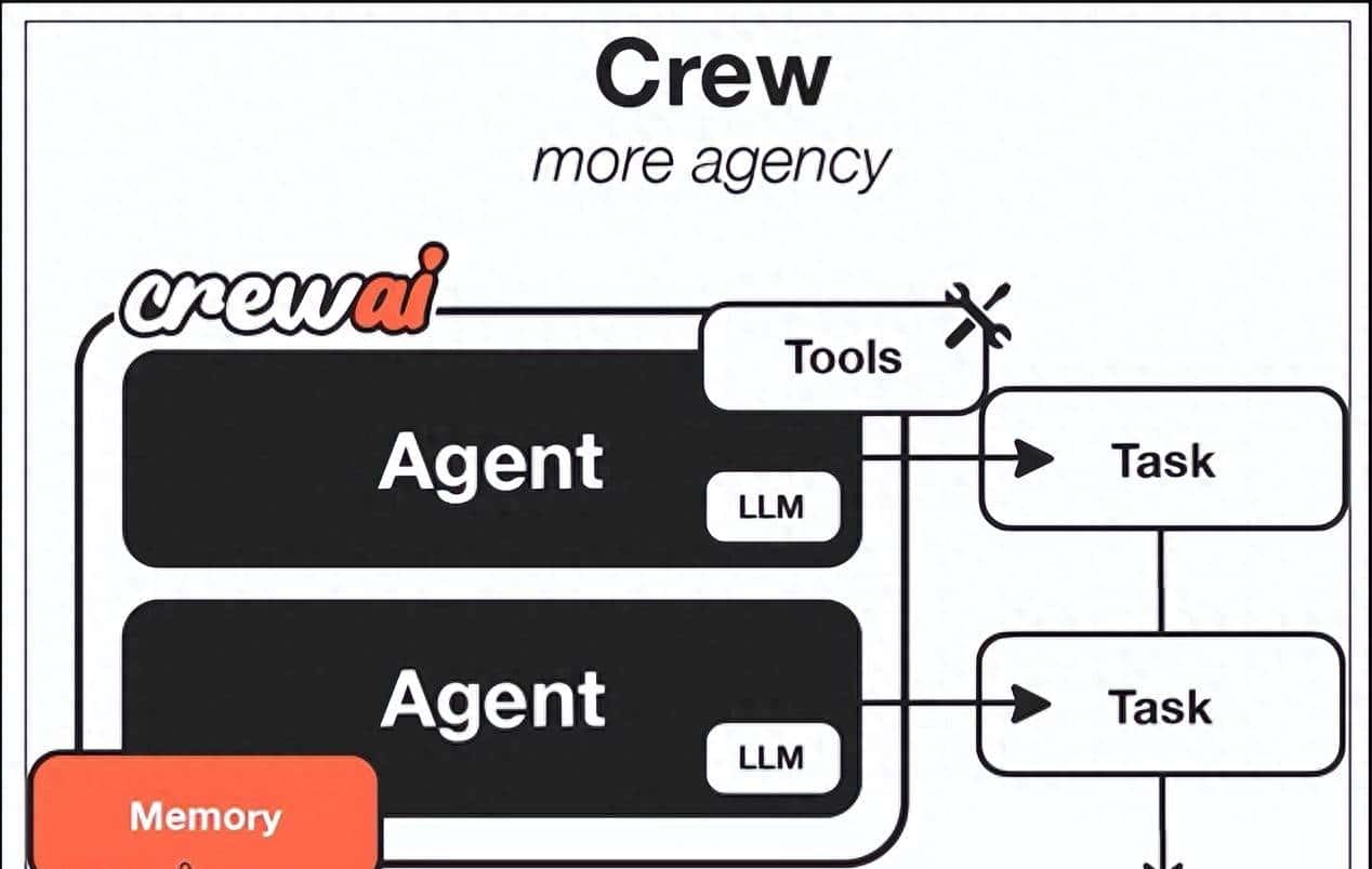 Agents 是具体的执行实体,有角色设定和能力边界;Tasks 是具体的任务指令;Crews 是把“人”和事儿撮合到一起的团队容器;Tools 则是 Agent 手里的工具(列如搜索、读文件、调 API等等);Processes 决定了活儿怎么干,列如说是大家排队干(顺序)还是层级汇报(层级)。