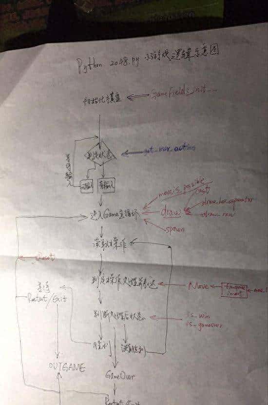 前言 2048游戏规则:简单的移动方向键让数字叠加,并且获得这些数字每次叠加后的得分,当出现2048这个数字时游戏胜利.同时每次移动方向键时,都会在这个4*4的方格矩阵的空白区域随机产生一个数字2或者4,如果方格被数字填满了,那么就GameOver了. 主逻辑图 逻辑图解:黑色是逻辑层,蓝色是外部方法,红色是内内方法,稍后即可知道~ 下面容我逐行解释主逻辑main()函数,并且在其中穿插外部定义的函数与类. 主逻辑代码解读(完整代码见文末) 主逻辑main如下,之后的是对主函数中的一些方法的解读