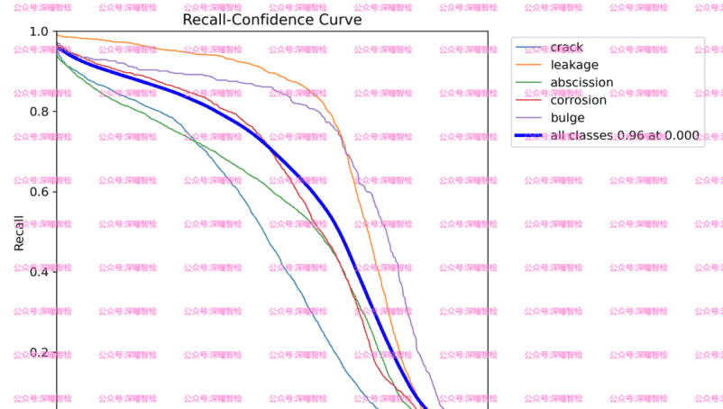 (2)深蓝色线:代表所有类别的平均召回率随置信度的变化情况。