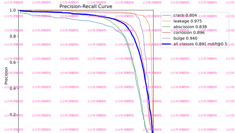 通过这条曲线,可以评估模型在目标检测任务中的整体性能,并找到合适的置信度阈值,以在精确率和召回率之间做出最佳平衡。PR曲线越接近右上角,模型性能越好,曲线下方的面积越大,说明模型在不同置信度下的表现越稳定。