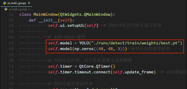 在ui_main_gui.py文件中,指定训练完成的最优模型路径