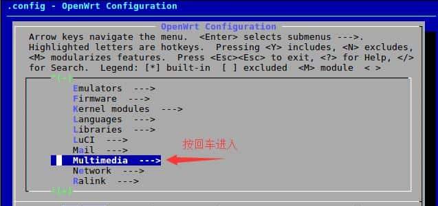 在出现的Openwrt Configuration界面中