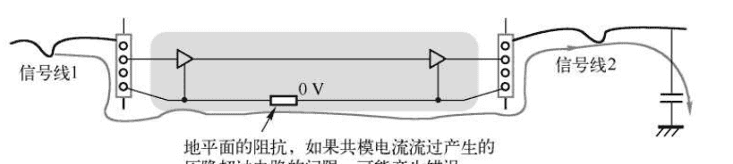 如果电路的逻辑电平是 3.3V的TTL电平, 共模电流流过的接地平面引起的压降大于0.4V, 就可能产生误码,从而导致EMC测试不通过。
