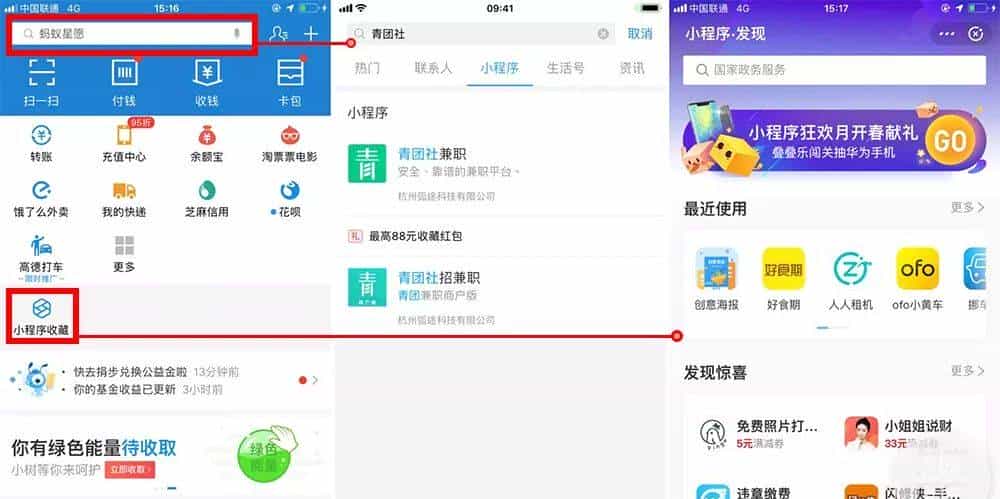 更多支付宝小程序入口,可以查看 ? 《细数支付宝小程序的 35 个入口,我们终于找全了》。