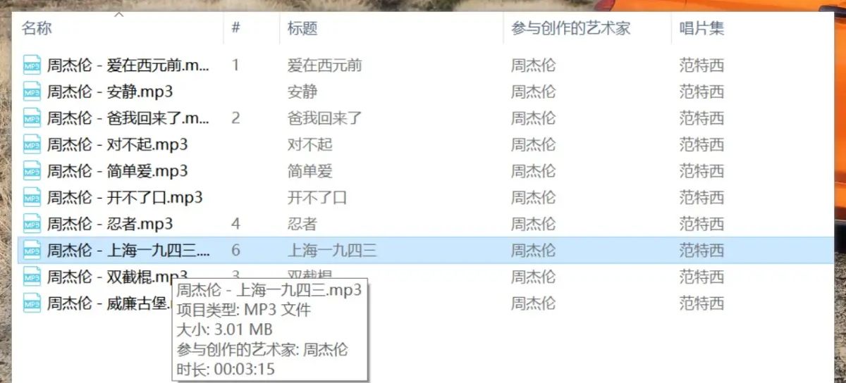 举个例子,下图是我的台式机电脑音乐库里的一个MP3歌曲文件,来自周董的《上海一九四三》。