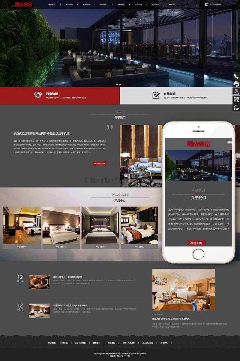 响应式酒店客房类网站织梦模板(自适应移动端)