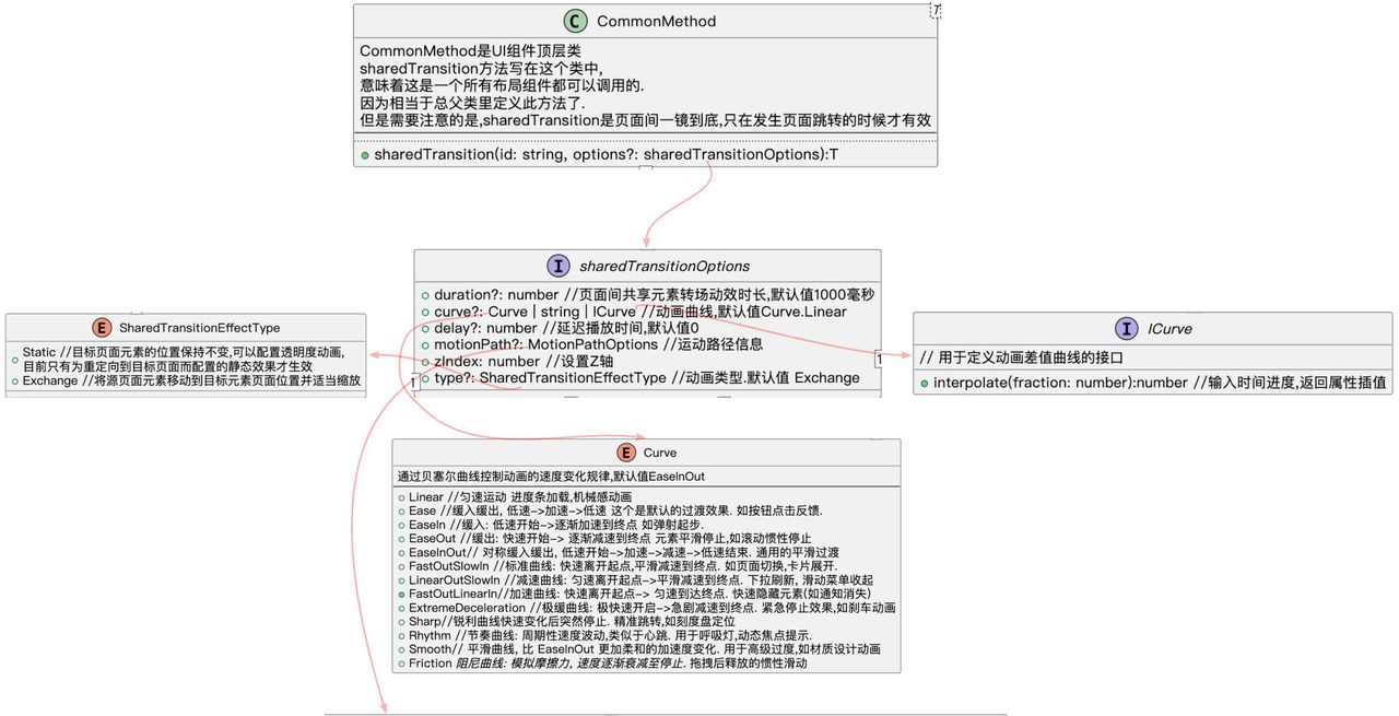 sharedTransition 也是CommonMethod类中声明的一个方法。CommonMethod作为ArkUI中顶级位置的类,可以简介的理解为UI组件的”父类”。 所以,所有的UI组件都具备这种页面间一镜到底转场的能力。 但是重述一遍,发生的契机是,页面跳转!