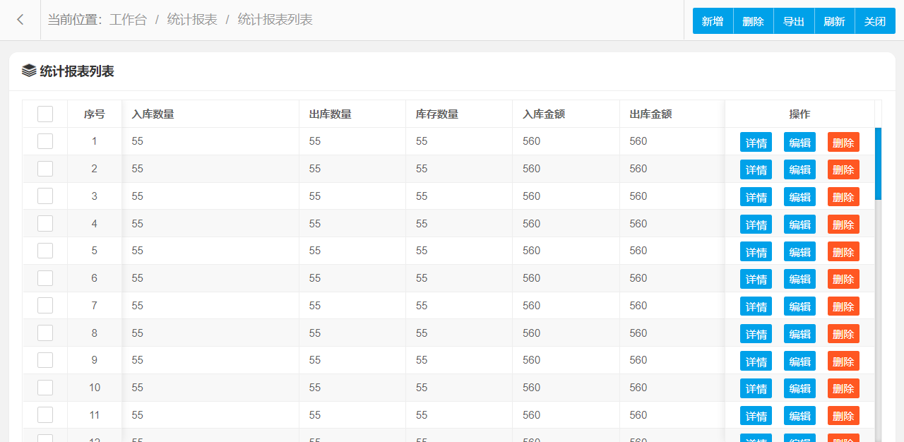 统计报表管理设置新增、编辑、删除、条件搜索、查看详情等操作,可按照页面提示进行操作执行,界面结构设计简单,操作流程简洁明了,可提升用户操作体验。