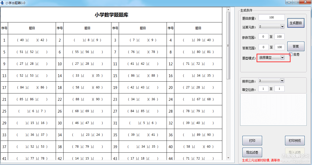 1.每页题目数量为100题.