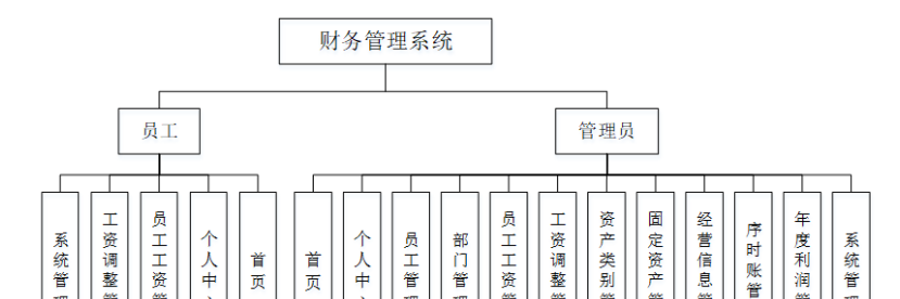 为了更好的去理清本系统整体思路,对该系统以结构图的形式表达出来,设计实现该财务管理系统的功能结构图如下所示: