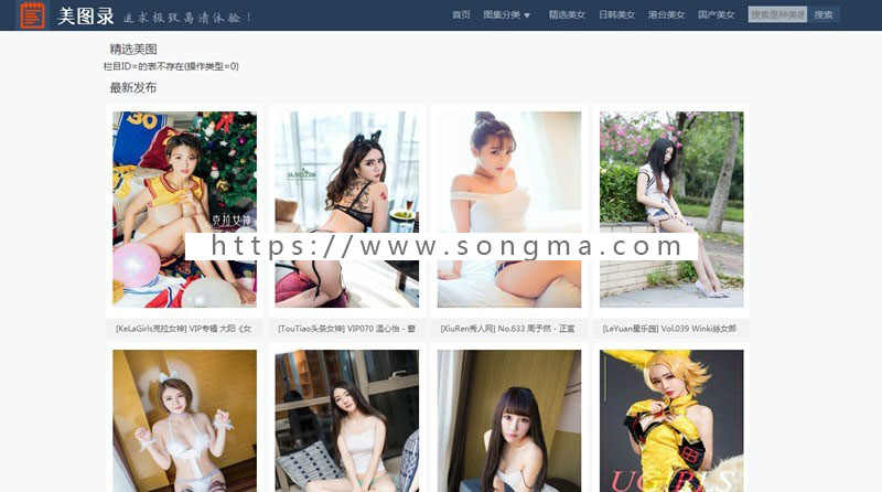 《美图录》大型高清美女图片站,模板漂亮大方,带采集,同步生成手机版,方便快捷,更多内容请看演示站