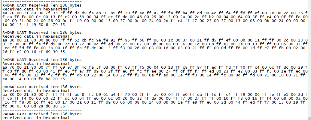 于是串口接收数据就从这样子零零散散几个字节,且找不到完整的包数据
