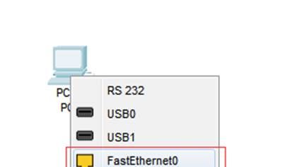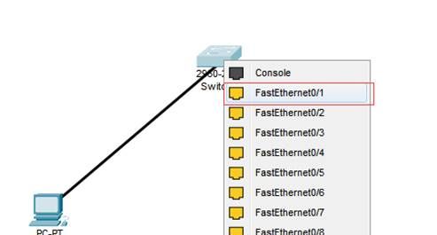 接着,再点击一次交换机,弹出框中选择FastEthernet0/1