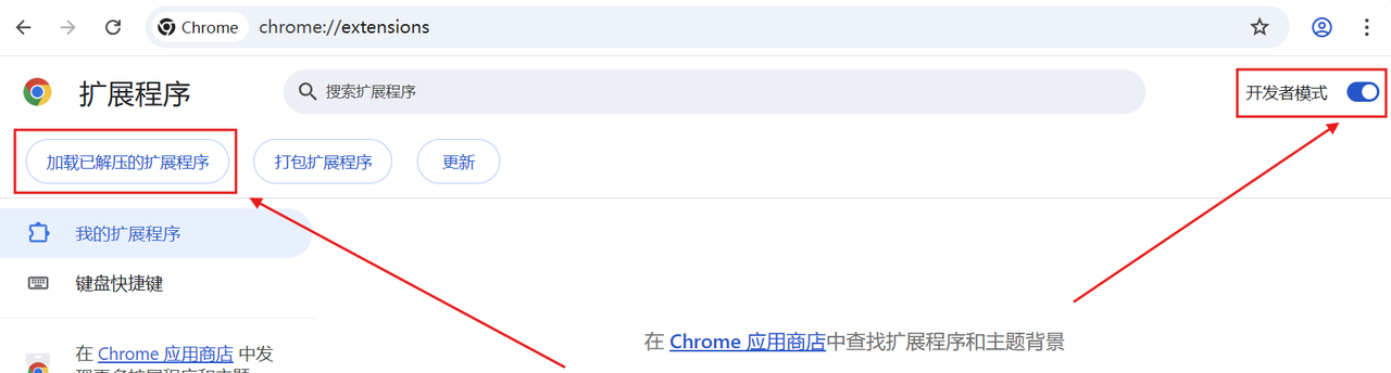 打开【开发者模式】,点击【加载已解压的扩展程序】