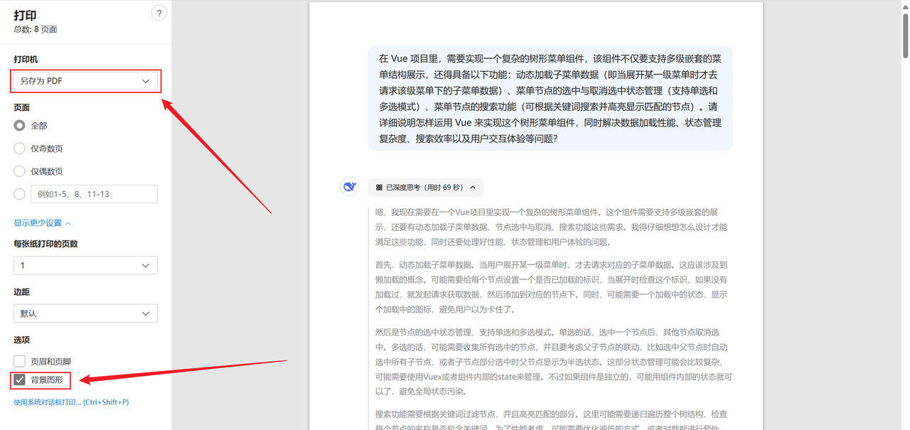 支持 deepseek 对话内容为另存为 PDF 文文件;