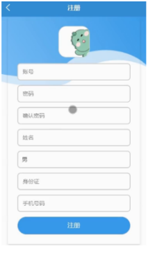 用户注册,在用户注册页面通过填写账号、密码、确认密码、姓名、性别、身份证、手机号码等信息进行注册操作,如图5-2所示。
