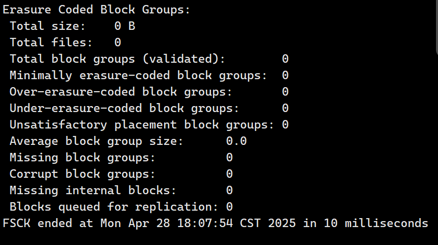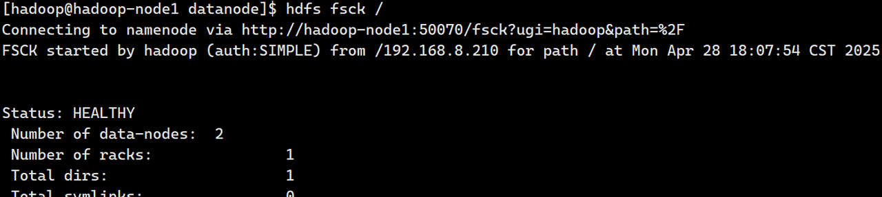 hdfs fsck / #检查HDFS文件系统损坏情况