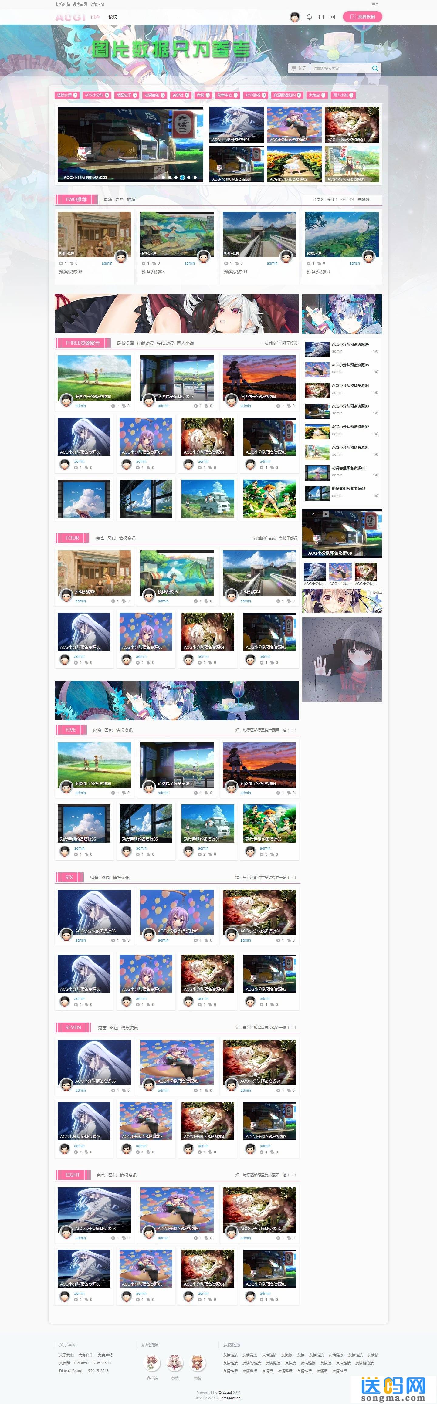 预留横幅广告位置*5,主分区宽度810px两个,右栏280px三个,可以自行增加。