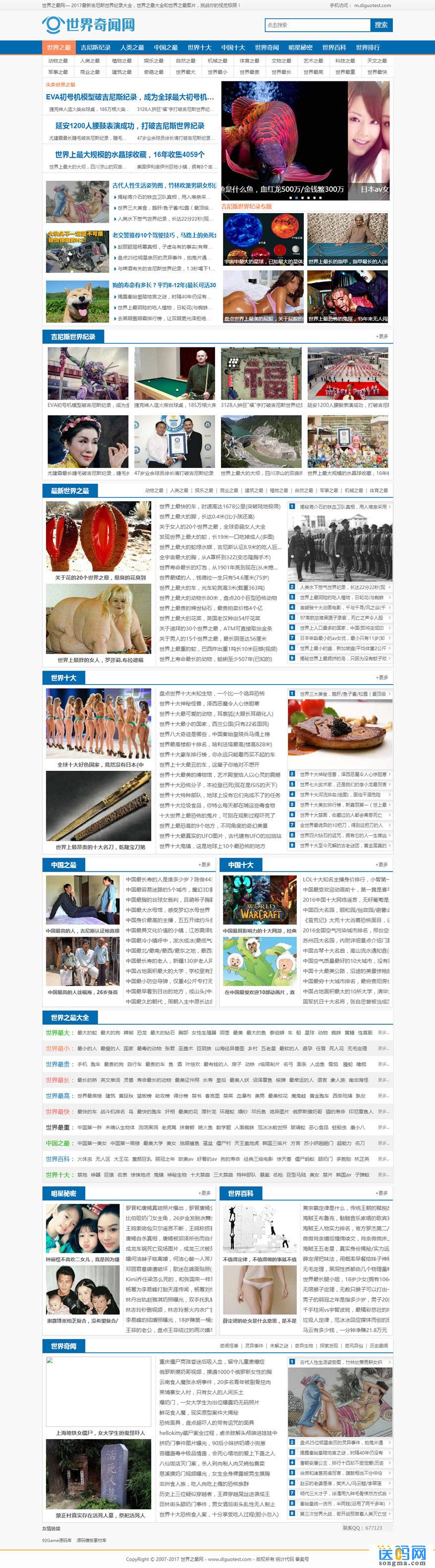 帝国CMS7.2新闻文章类网站模板仿【世界之最】92Game源码带手机版, 带火车头采集