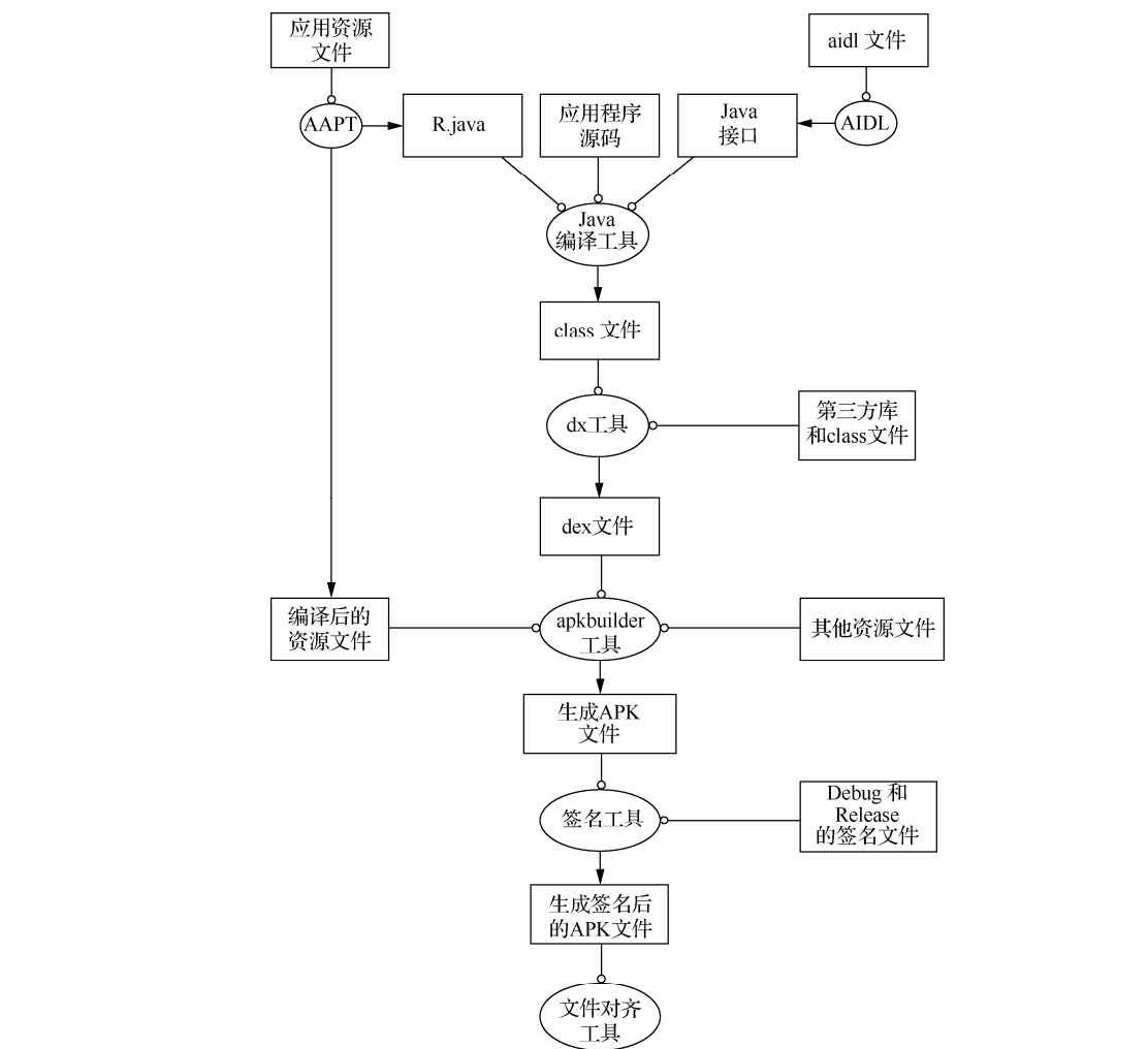 图 5-2 是 Android 应用程序编译打包的主要过程,可以分为以下几个重要流程。