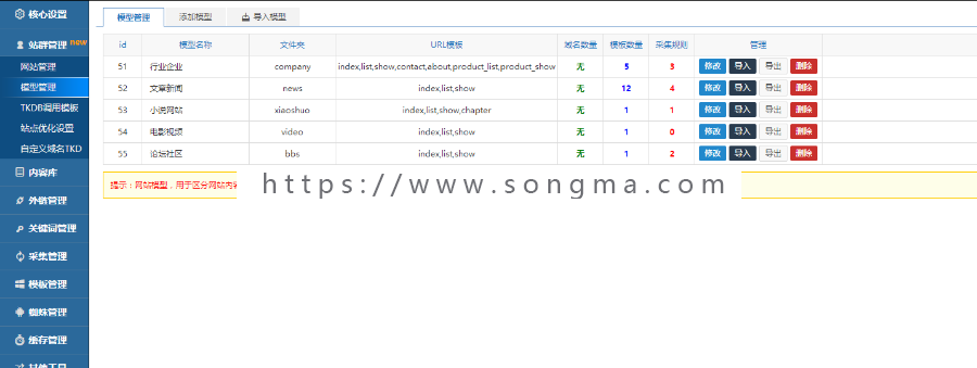 此程序,店主亲测了,后端一共20套模板,此程序是做站群的很不错源码,后端强大,功能多,想做站群的推荐用着核桃程序,后端简单,一目了然!