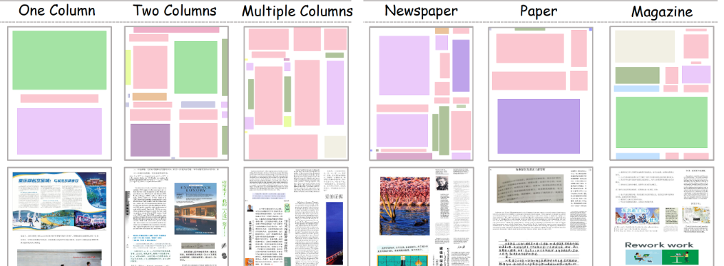 数据集包含的文档布局示例如下: