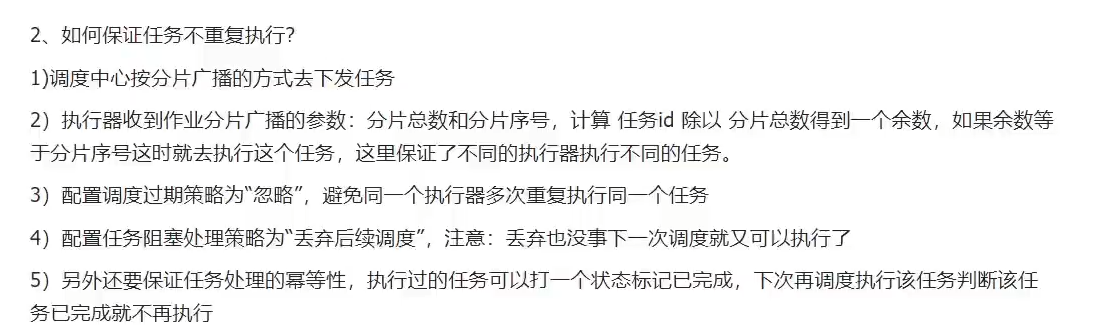 调度中心在发起请求时,会给每个执行器发送分片参数,包括执行器总数,和分片序号,会告诉执行器,他的序号是几?通过任务id除以序号的余数是几,谁就执行这个任务。