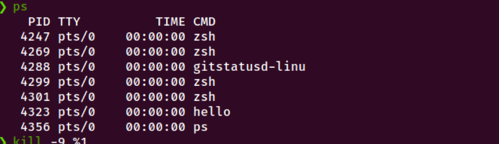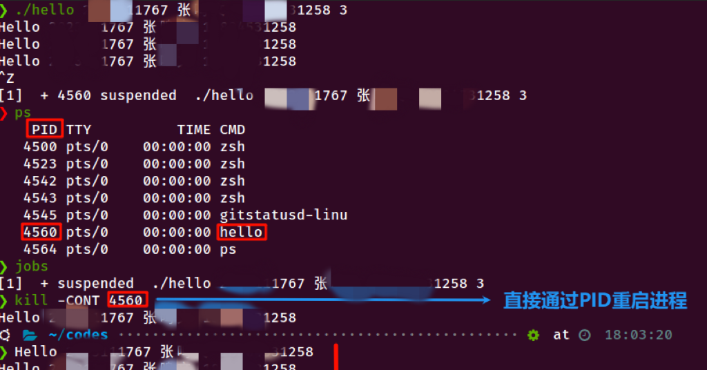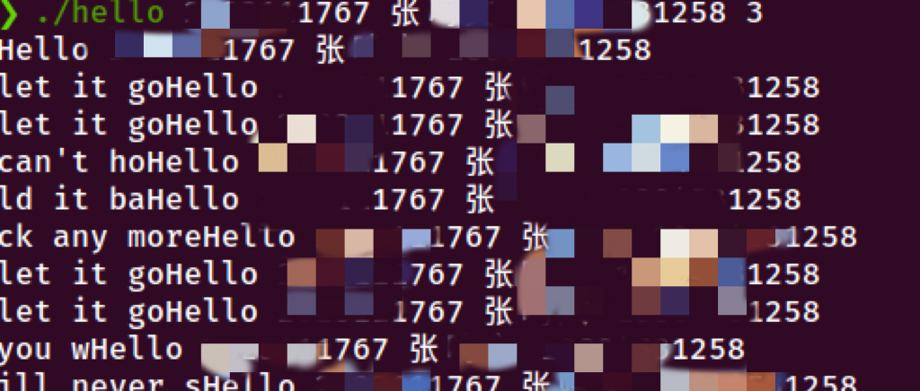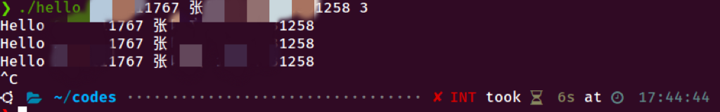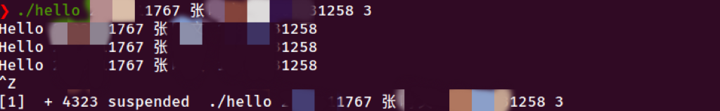 ’结尾的字串(作为一次输入),hello结束后,stdin中的其他字串会当做Shell的命令行输入。会发现,不停乱按并没有阻碍进程的执行,最终还是完整的输出了预期中的10次提示信息。