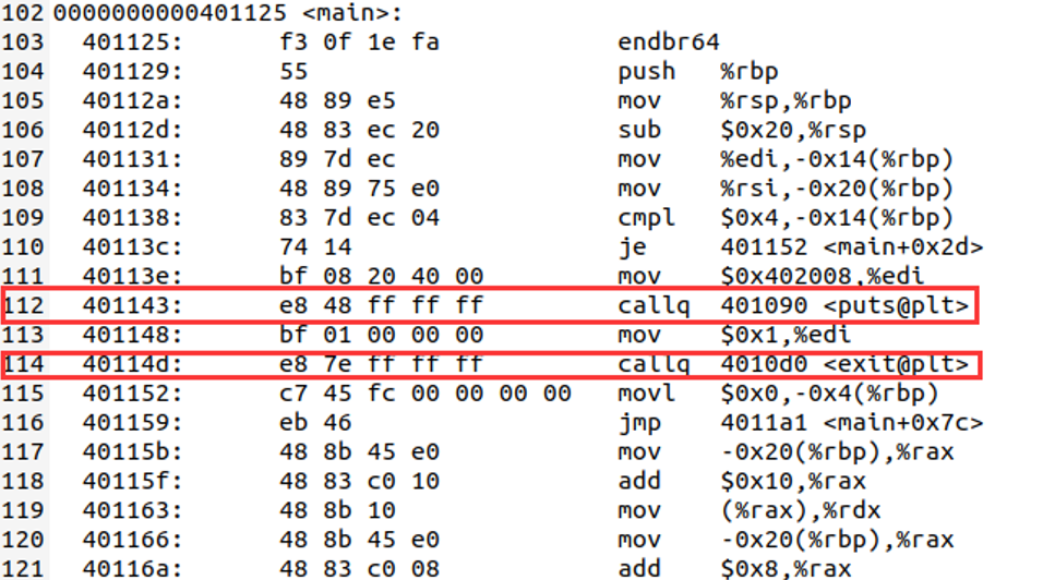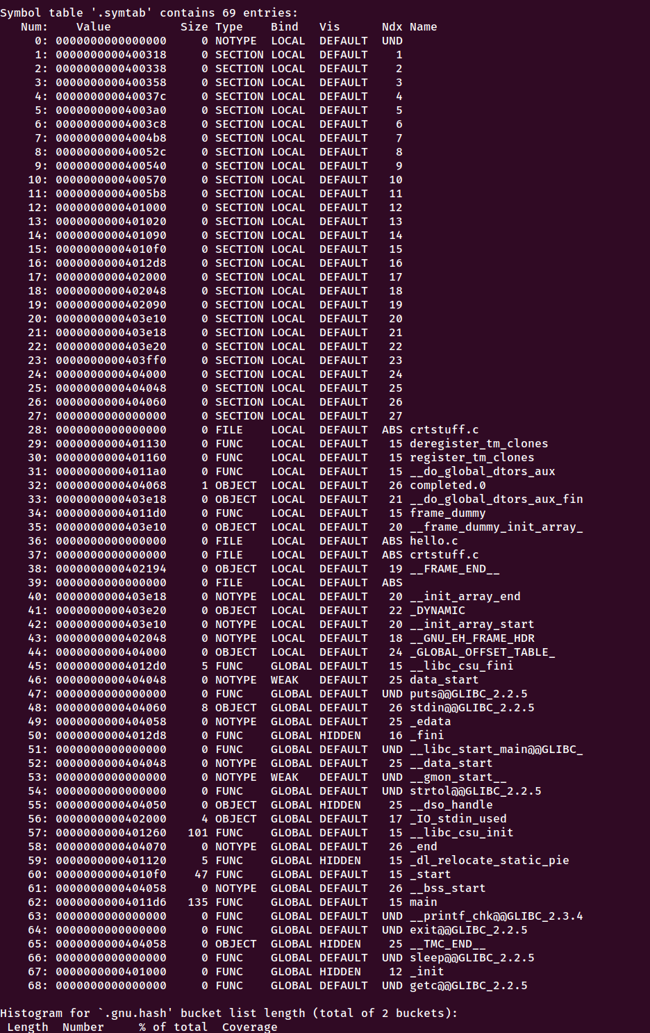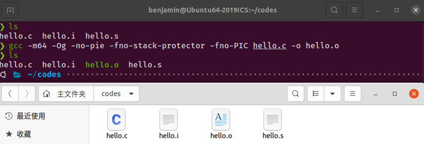 编译命令:gcc -m64 -Og -no-pie -fno-stack-protector -fno-PIC hello.c -o hello