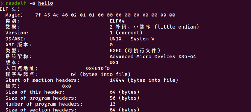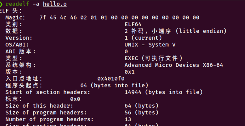 hello.o:将hello.s进行汇编后得到的二进制目标文件;