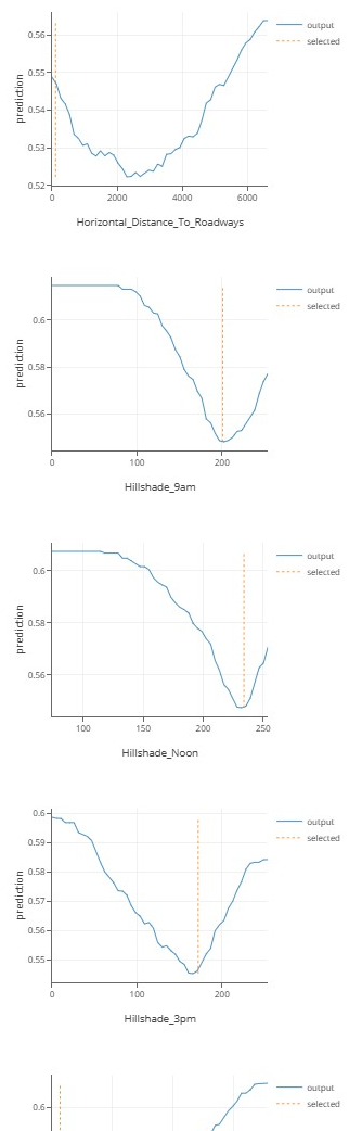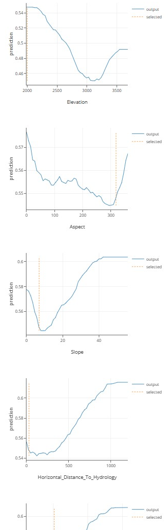 我们还可以分析模型来理解它:例如,我们在海拔的局部依赖图中看到,“正常”覆盖范围大约在 2900 米到 3300 米的海拔。通过查看其他属性,还可以得出其他类似的结论。