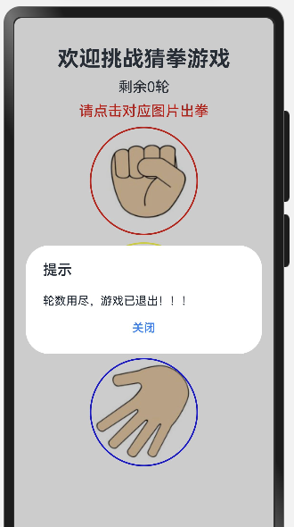 this.resultMessage = '轮数用尽,游戏已退出!!!'