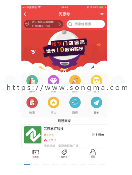 “周边优惠卡券”可以制作优惠券,代金券,折扣券……客户在某一个区域,打开周边优惠小程序,可自动将周围的优惠券商家推送到客户手机上!