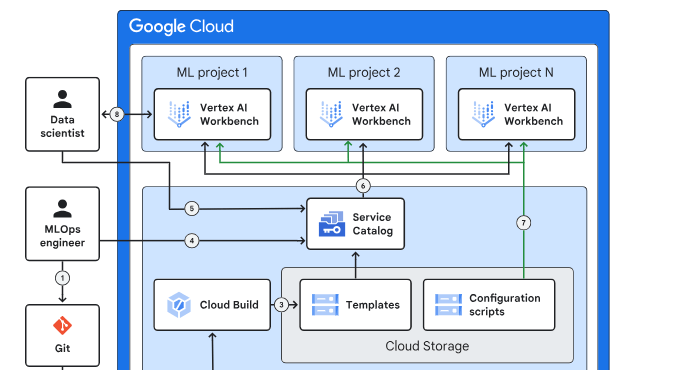 数据科学家使用服务目录部署 Vertex AI Workbench 笔记本,它是使用 Google Cloud 资源的主要界面。