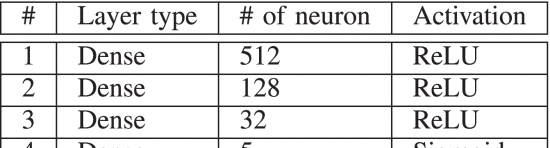 表 4 用于混淆多标签分类的 DNN 架构(学习率:0.0001;批量大小:256;优化器:Adam)