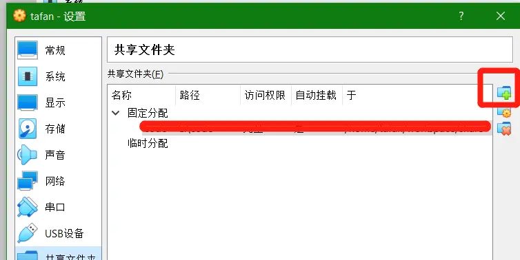 打开 设置-共享文件加, 点击添加共享文件夹按钮