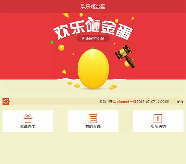 jQuery手机端欢乐砸金蛋代码是一款点击砸金蛋,随机弹出中奖结果 © 版权声明文章版权归作者所有,未经允许请勿转载。如内容涉嫌侵权,请在本页底部进入<联系我们>进行举报投诉!THE END资源下载 如果内容对您有所帮助,就支持一下吧!点赞6 分享QQ空间微博QQ好友海报分享复制链接收藏