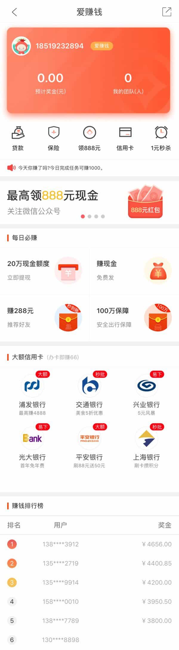 通用的爱赚钱app金融理财介绍管理页面模板。贷款,保险,领800元,信用卡,秒杀,每日必赚,大额信用卡,赚钱排行榜等 © 版权声明文章版权归作者所有,未经允许请勿转载。如内容涉嫌侵权,请在本页底部进入<联系我们>进行举报投诉!THE END资源下载 如果内容对您有所帮助,就支持一下吧!点赞8 分享QQ空间微博QQ好友海报分享复制链接收藏