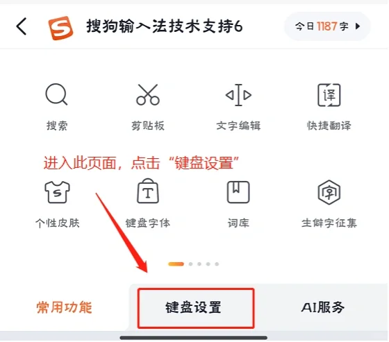 点击键盘左上角S标→点击“键盘设置”→点击“定制工具栏”→点击图标上的红色按钮就能删除→添加常用的其他功能→点击完成